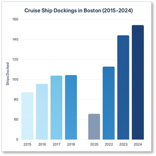 From 2021–2022 a recovery resumed, but not all ships operated at full capacity. And from 2023–2024 passenger volume surged, hitting ~0.5M in 2024—a 150% increase over 2015.